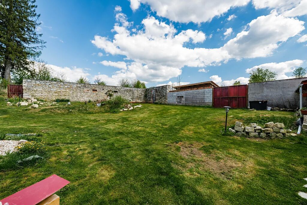 • Nově vybudovaný seník, jezírko a několik vzrostlých ovocných stromů.