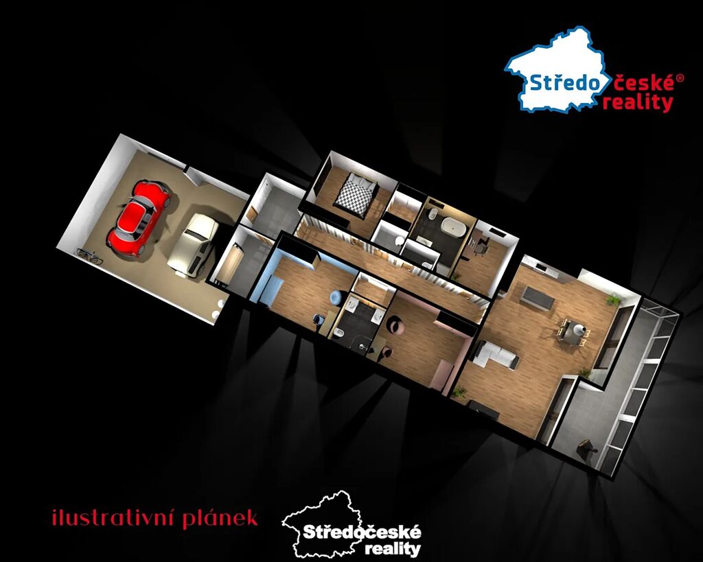 - dvougaráž (50 m²) s dálkově ovládanými vraty, další parkování pro více aut možné na pozemku