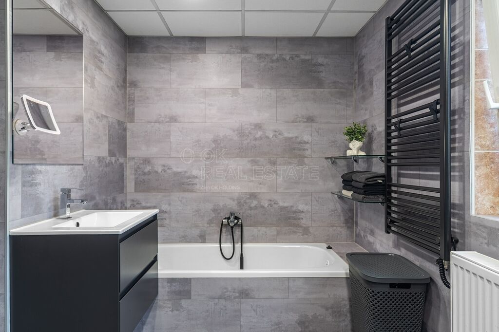 V podkroví jsou tři další pokoje. Okna jsou plastová, což přispívá k dobré energetické účinnosti a komfortu bydlení. Vytápění je zajištěno moderním tepelným čerpadlem i kotlem na tuhá paliva, umožňující efektivní a spolehlivý provoz.