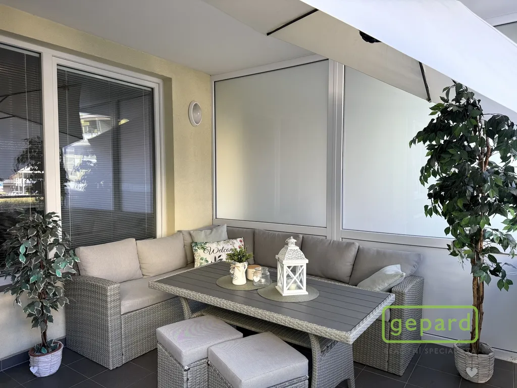 Dominantou bytu je prostorná terasa orientovaná na východ, přístupná přímo z obývací části – ideální místo pro ranní kávu nebo odpočinek.