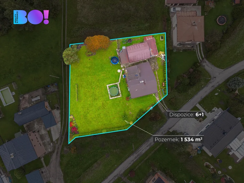 Dům je v udržovaném původním stavu, částečně podsklepený, a stojí na pozemku o celkové ploše 1 534 m². Součástí nemovitosti je udržovaná oplocená zahrada, hospodářská budova a garáž, které nabízejí další možnosti využití a pohodlné zázemí pro každodenní život.