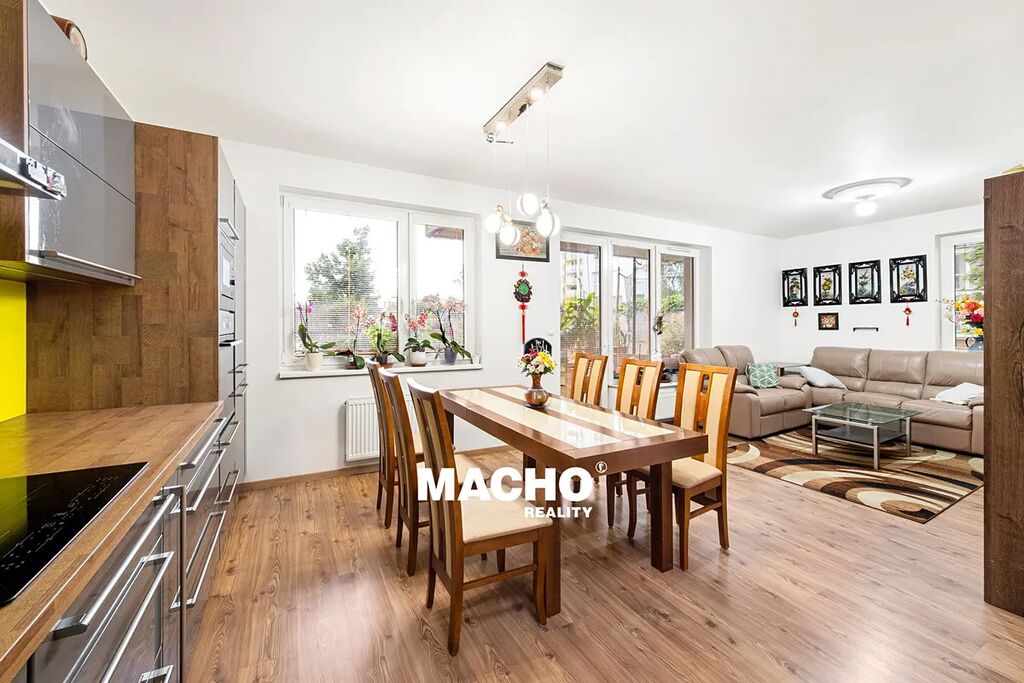- obývací pokoj s kuchyňským koutem tvoří otevřený a světlý prostor, ideální pro společné chvíle, vaření i relaxaci,