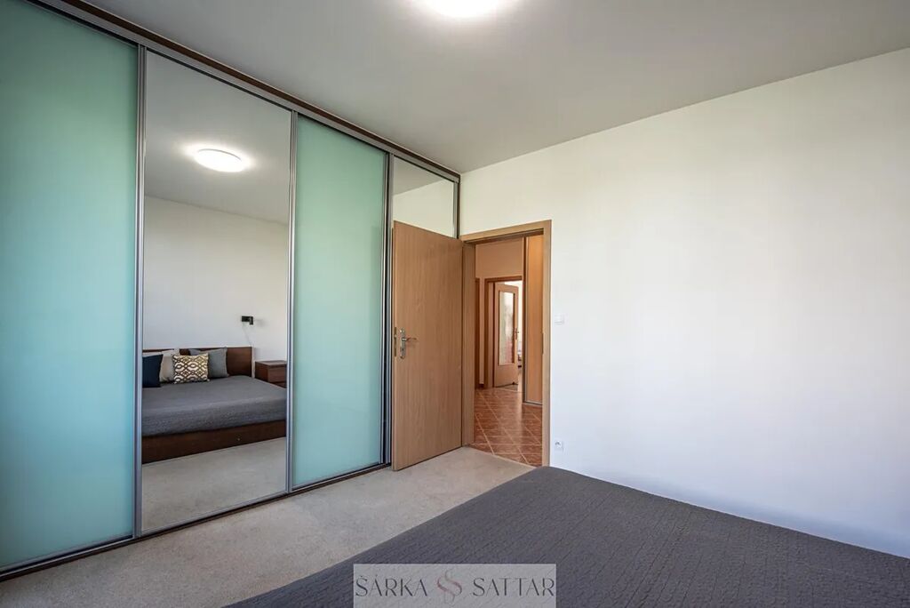 - Dvě samostatné ložnice 13 a 14m2 každá s balkonem (á5m2) a jedna vestavěnými skříněmi