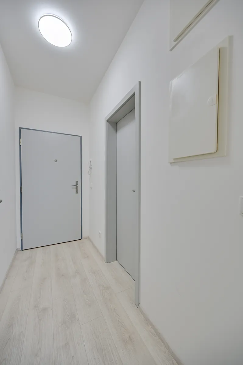 Byt nabízí podlahovou plochu 32 m² a navíc disponuje balkónem o ploše 3 m², což poskytuje příjemný prostor pro relaxaci. Díky tomu si budete moci užívat krásné výhledy nebo si užít venkovní posezení. Byt je vybaven elektrickými venkovními žaluziemi. Byt má plně vybavenou kuchyňskou linku (sklokeramická varná deska, trouba, digestoř, mikrovlnná trouba, myčka a kombinovaná chladnička) zbylá část pokoje je nevybavená, což umožňuje novým nájemcům si jej zařídit dle vlastního vkusu a potřeb. Energetická třída B značí ekonomickou spotřebu energií, což může přinést úspory na provozních nákladech, které u této nemovitosti činí 2 352 Kč měsíčně.