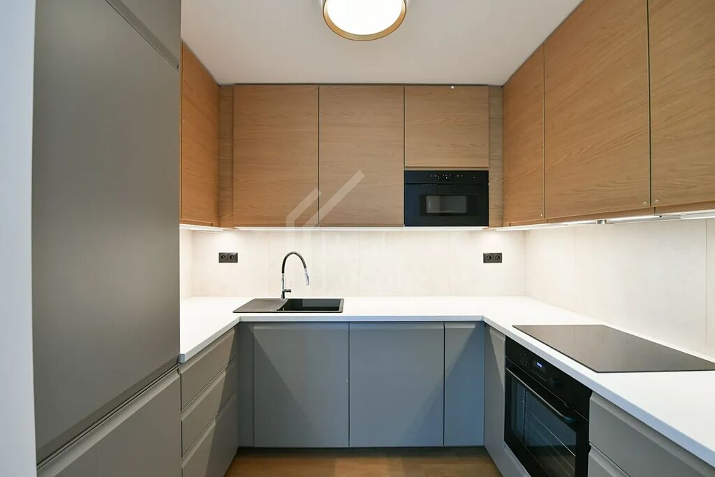 Součástí vybavení je kuchyňská linka se spotřebiči (lednice, trouba, varná deska, mikrovlnná trouba).