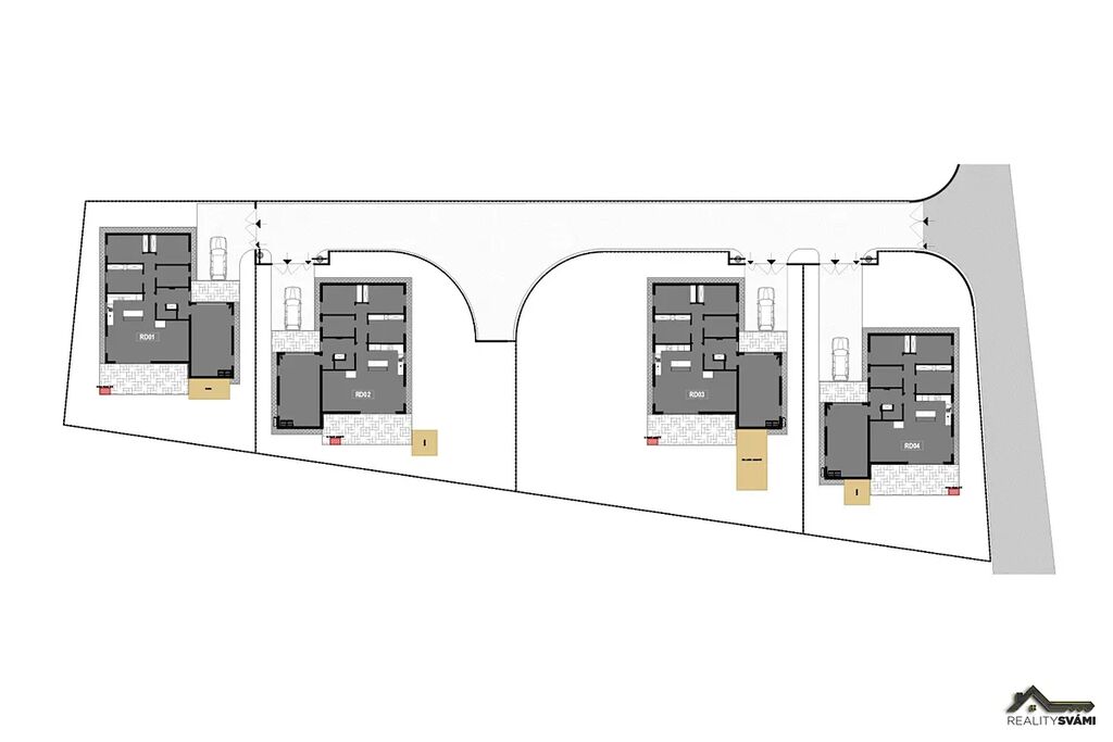 Nabízíme k prodeji moderní přízemní rodinný dům o dispozici 4+kk s garáží a dalším parkovacím místem. Dům je součástí uzavřeného rezidenčního areálu s dálkově ovládanou vjezdovou bránou a vnitřní komunikací vedoucí k jednotlivým domům.