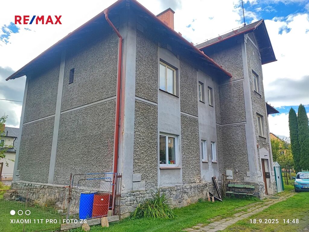 Remax nabízí k prodeji byt 2+1 (67 m2) v podílovém spoluvlastnictví, ve vyvýšeném přízemí dvoupodlažního, cihlového domu v klidné části Jeseníku (ul. Janáčkova). Byt je prostorný, před domem parkování, za domem zahrada s ovocnými stromy.
