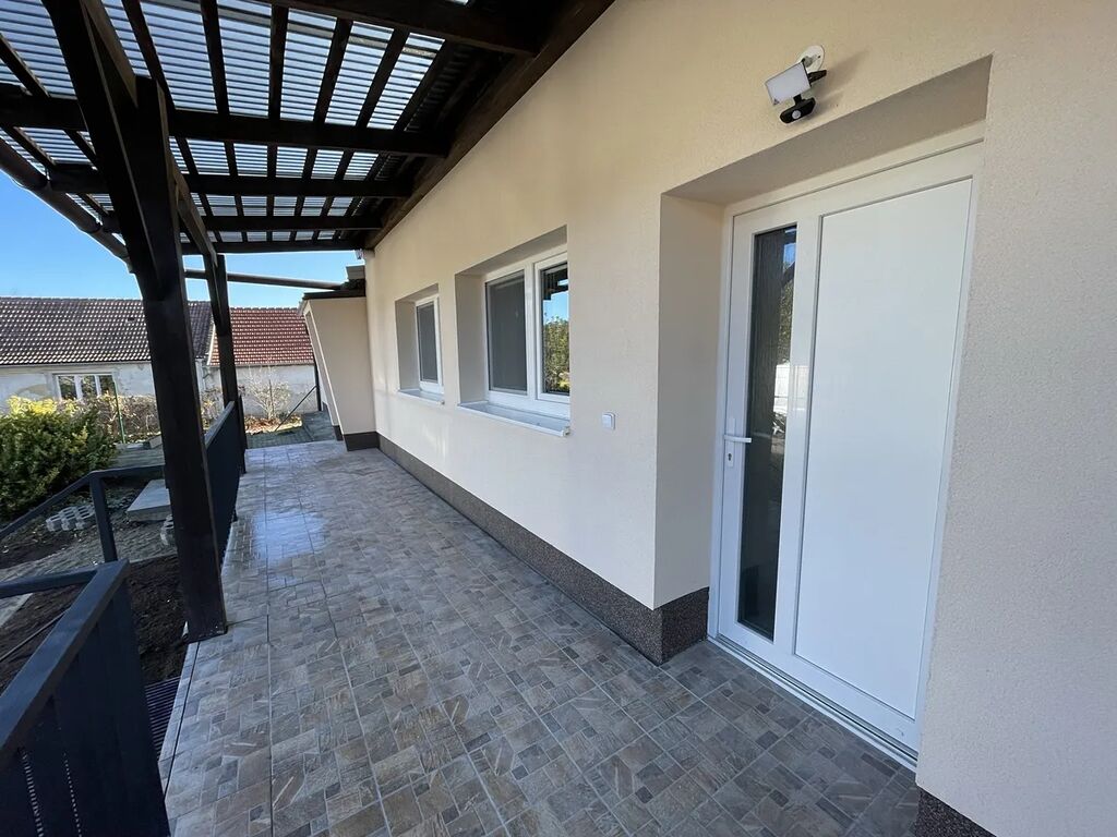 Vybavení: nová kuchyňská linka se spotřebiči (sklokeramická varná deska s indukcí, trouba, digestoř, myčka), jídelní stůl se 4 židlemi, botník, spížová skříň, skříňka se šuplíky, laminátová plovoucí podlaha, v koupelně je sprchový kout, samostatné WC, plastová okna se žaluziemi