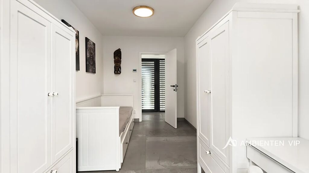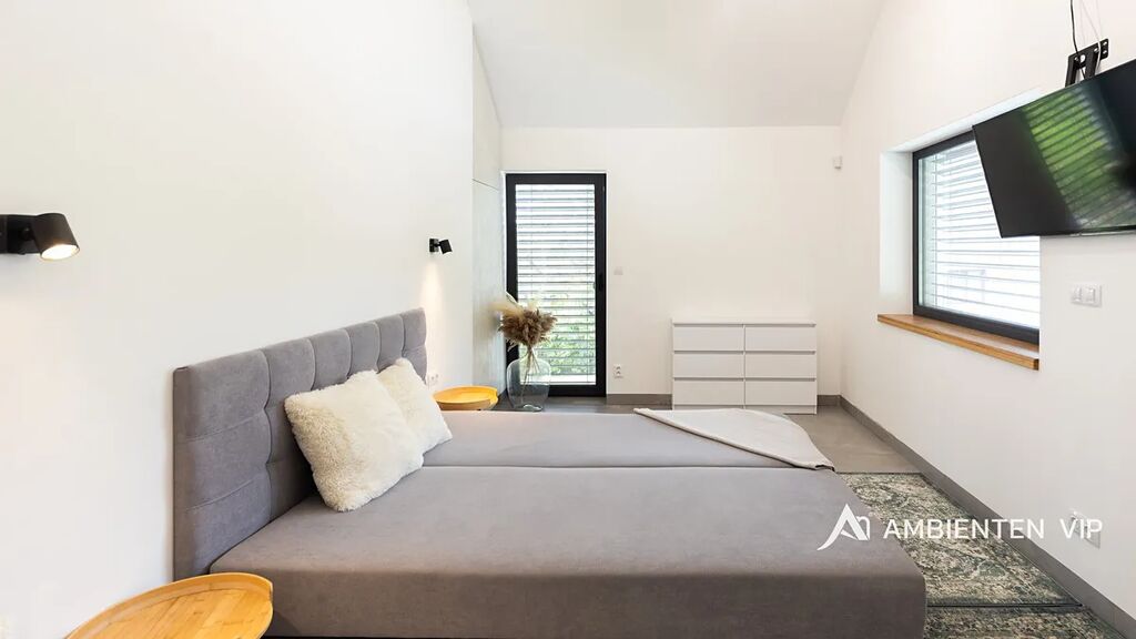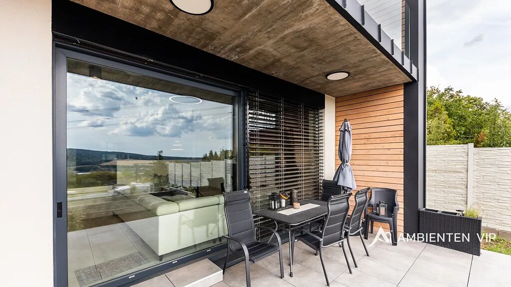 AMBIENTEN VIP si Vám dovoluje exkluzivně nabídnout novostavbu samostatně stojícího rodinného domu o dispozici 4+kk se zahradou, zahradním domkem a s možností parkování až 4 vozů na vlastním pozemku v obci Popůvky. Celková obytná plocha domu činí 135,2 m² a plocha pozemku činí 2419 m².  Nemovitost je kompletně oplocena. Parkování – aktuálně je zde parkování pro čtyři vozy, k dispozici je od majitele projekt na výstavu dvojgaráže s možností zahájení okamžité výstavby.  Kolaudace nemovitost proběhla v roce 2023. Nemovitost je ihned k nastěhování. Na nemovitosti je možnost zřídit trvalý pobyt. Má plně funkční internet v celém domě. Energetická třída nemovitosti je B. Vybavení domu je ve velice moderním provedení. Podlahy jsou ve velkoformátové dlažbě Imola. Při realizaci byl kladen důraz na prostor, světlo a praktičnost nemovitosti.