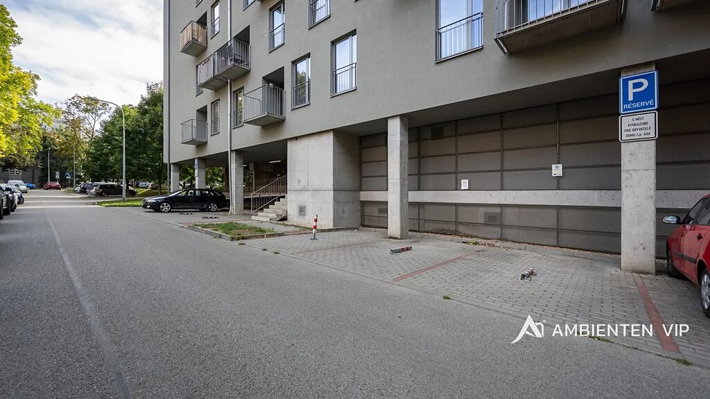 K jednotce náleží sklepní kóje o nadstandardní velikosti 10 m² a venkovní parkovací stání, což je v této části města významným benefitem. Celkové měsíční náklady na bydlení se pohybují do 5.000 Kč. V bytovém domě je také možnost využití kolárny pro uskladnění kola nebo kočárku.