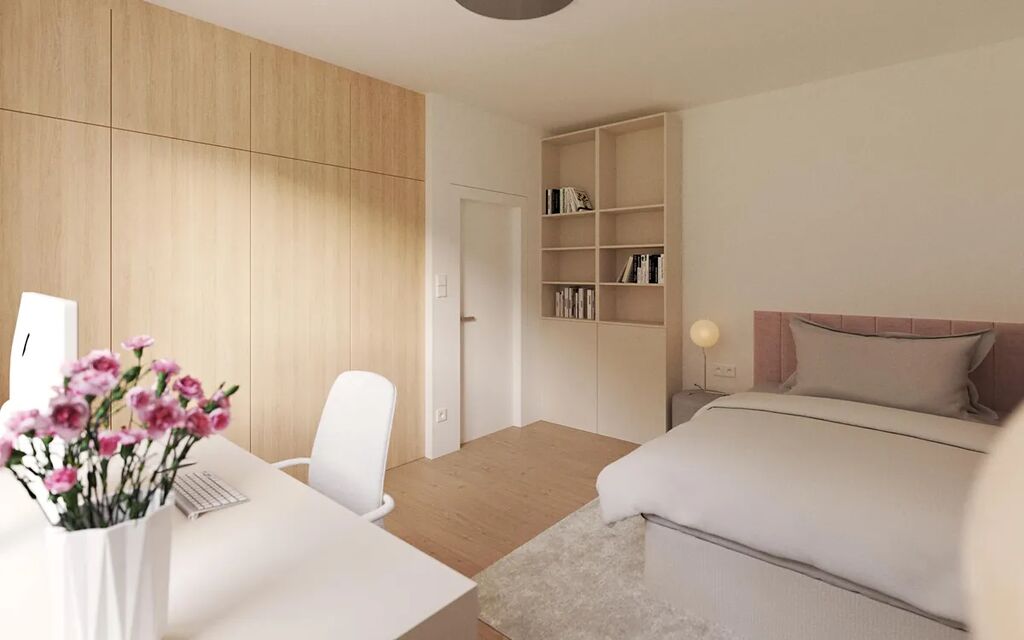 Promyšlená dispozice pro maximální comfort znamená, že v přízemí vás přivítá útulný pokoj ideální jako pracovna nebo pokoj pro hosty, samostatná toaleta, technická místnost a především prostorný obývací pokoj s přípravou na kuchyňský kout. Ten plynule navazuje na soukromou zahradu - perfektní místo pro relaxaci i rodinné chvíle.