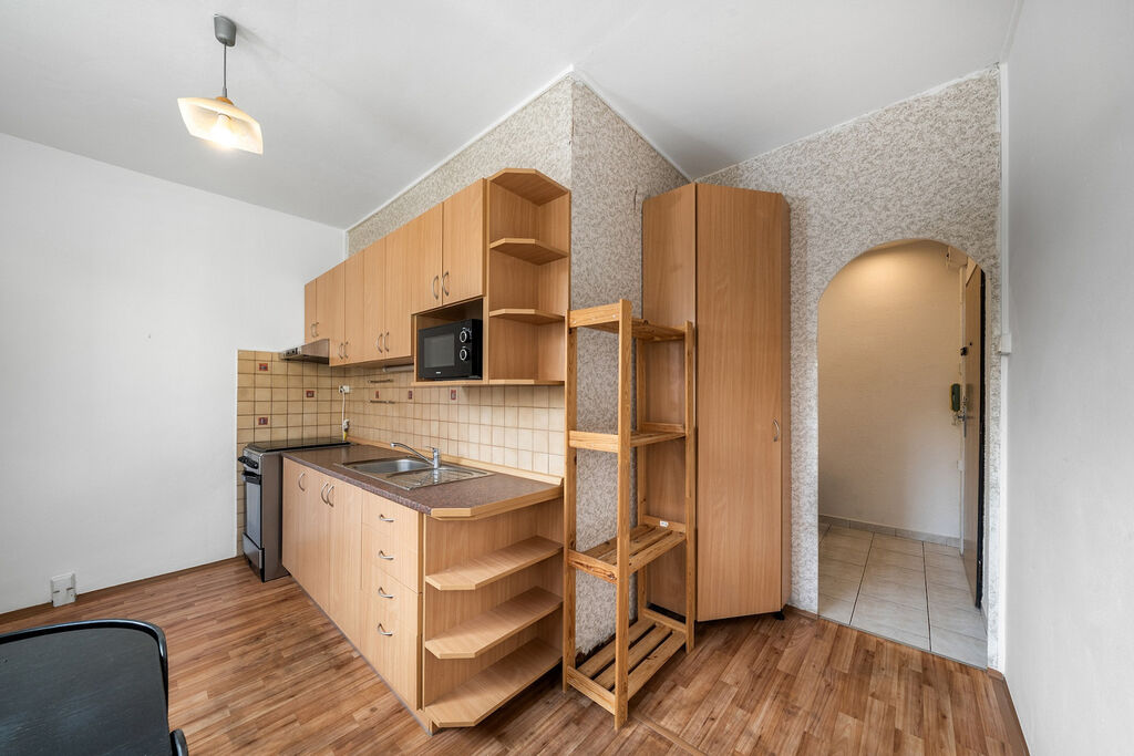 Vstupní chodba bytu nabízí zajímavé úložné prostory. Z chodby je přístup do obývacího pokoje, ze kterého je přístup do jedné z ložnic s lodžií, směřované do zeleně. Dále se z chodby dostanete do druhé ložnice a kuchyně. Koupelna s vanou a oddělená toaleta jsou v původním stavu. Součástí bytu je také sklepní kóje a možnost využít společné sušárny.