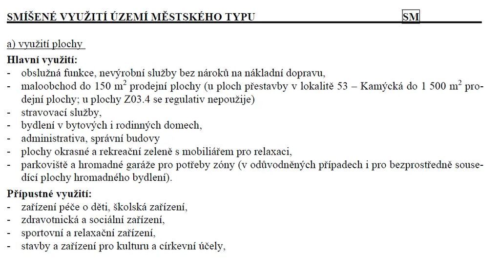 -maloobchod do 150 m2 prodejní plochy (u ploch přestavby v lokalit 53 – Kamýcká do