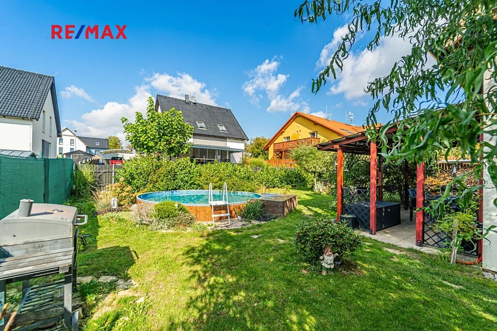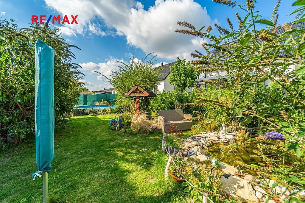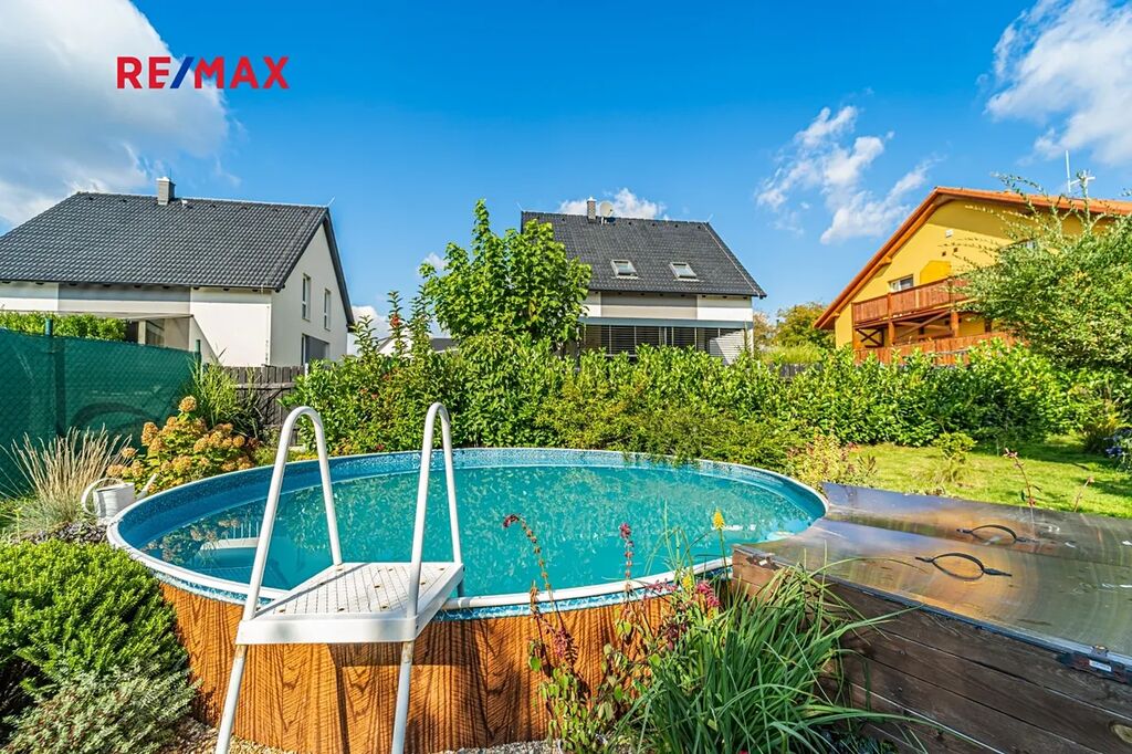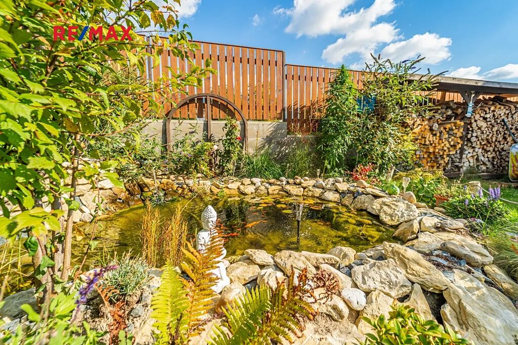 Nemovitost sestává z rodinného domu o dispozici 4+kk (96 m2) , samostatně stojící garáže s montážní jámou (20 m2), zastřešené terasy (15 m2), přírodního jezírka, zahradního domku a polozapuštěného venkovního bazénu. Bazén i jezírko disponují čistícím a filtračním zařízením. Na první pohled Vás osloví pečlivě udržovaná zahrada kolem domu, citlivě kombinující okrasné a užitkové prvky.