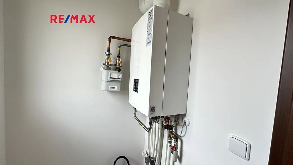 Dispozice bytu pak nabídne v 1. NP obývací pokoj, jenž je plynule propojený s prostorem kuchyně. Ta je vybavena kuchyňskou linkou s vestavnými spotřebiči. Dále vstupní chodbu, technickou místnost s plynovým kondenzačním kotlem (topení je podlahové), wc s umyvadlem a komoru.