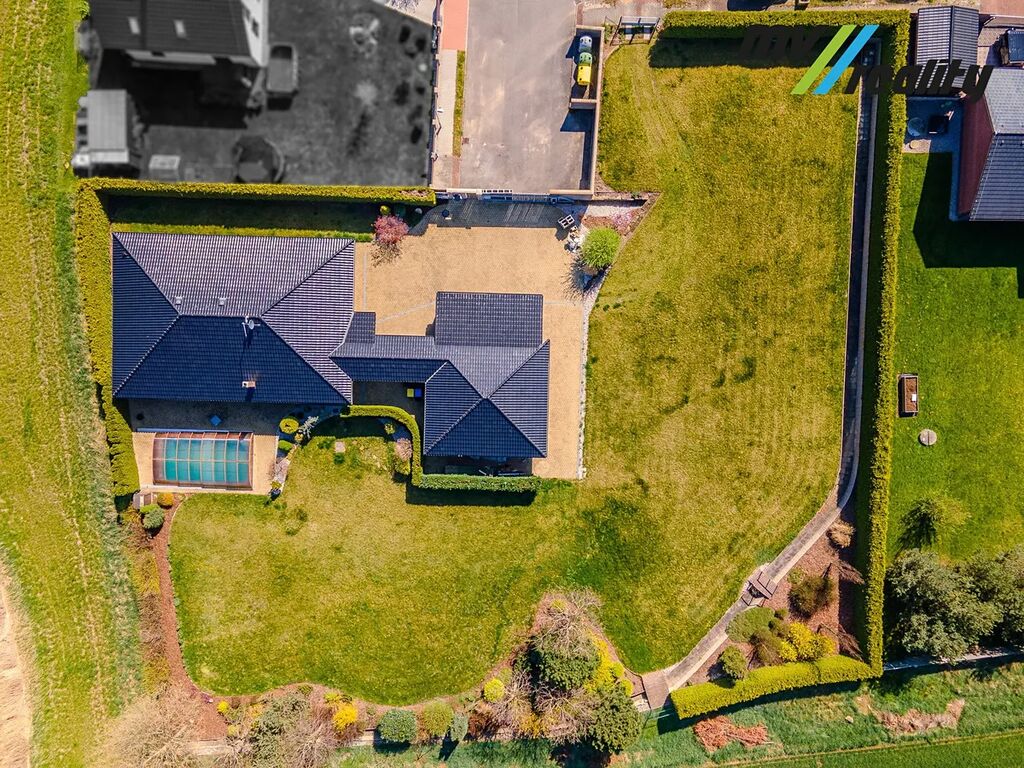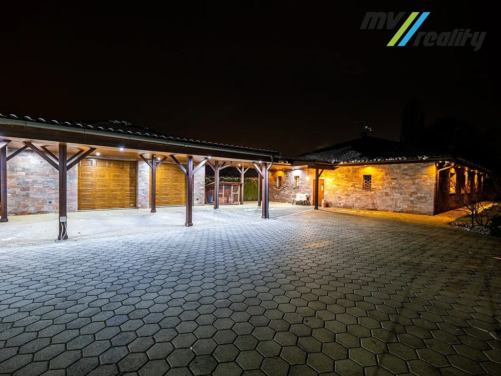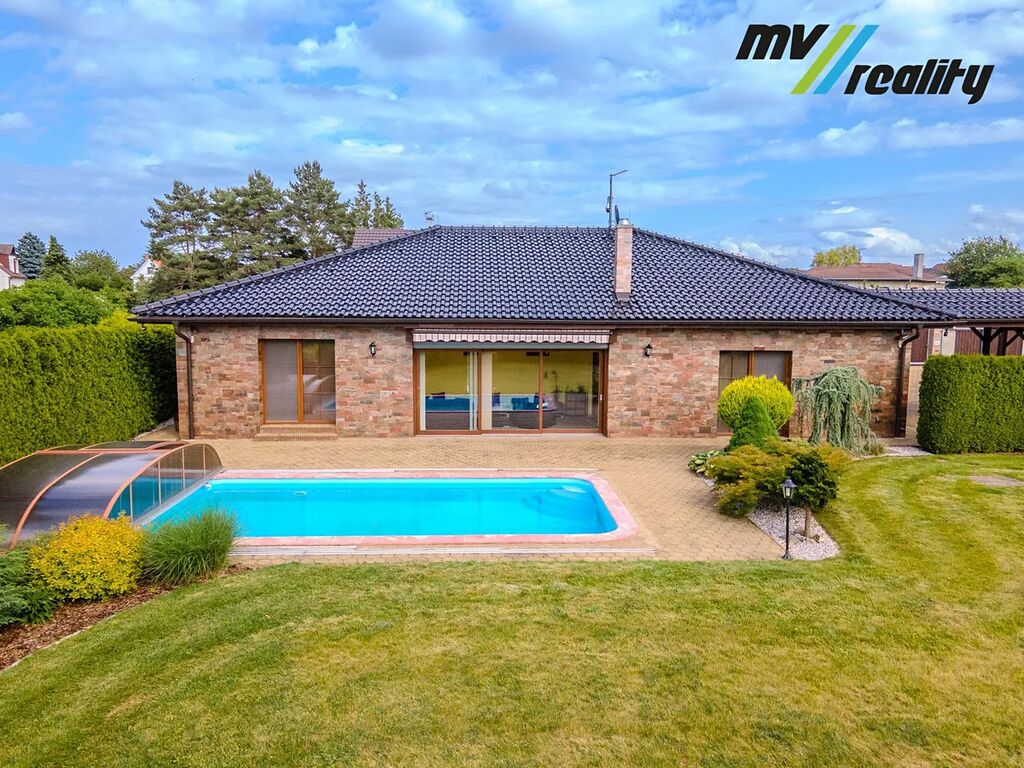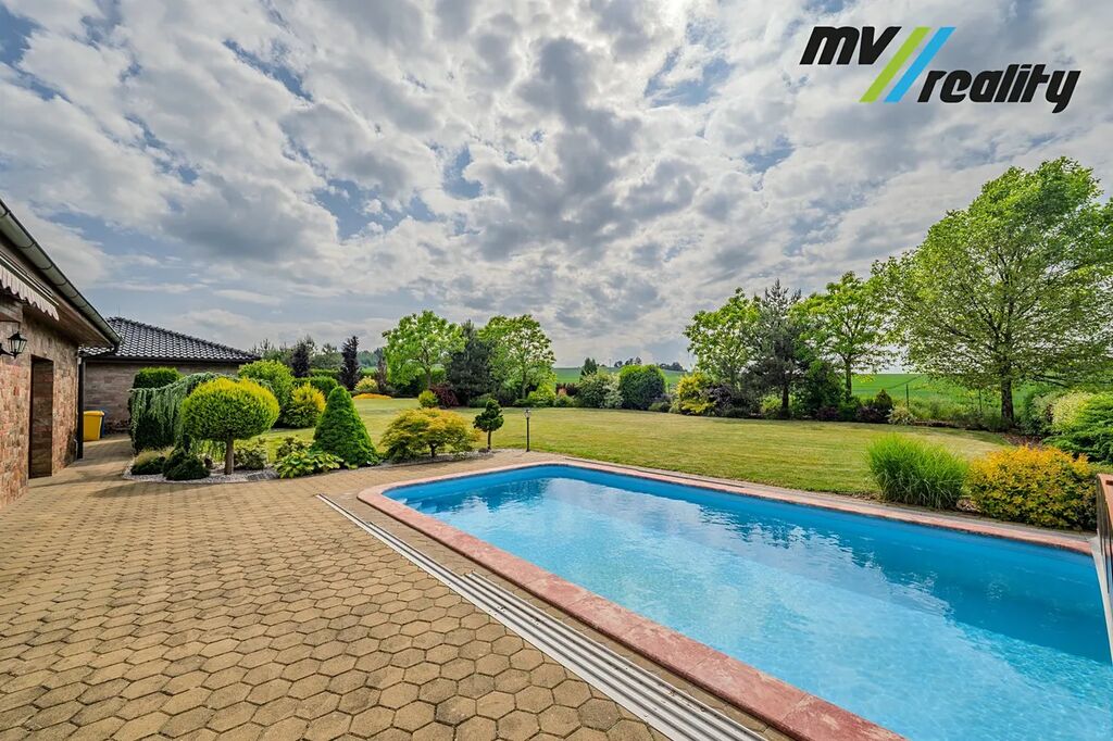 Představujeme Vám k prodeji nový moderní, bezpečný a energeticky úsporný dům 5+1 (s obytnou plochou cca 195 m2) s krásnou zahradou (2.191 m2), krytým bazénem a terasou s kouzelným výhledem do přírody a na Bezděz v obci Přišimasy (10 min Český Brod, 15 min Říčany, 20 min od Prahy).