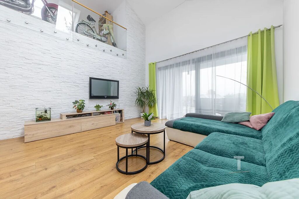 Dům je proveden s otevřenou galerií v podkroví, která je spojena s hlavním prostorem obývacího pokoje s kuchyní (42 m2), kde je možnost vzhledem prostoru v krovu k dalšímu rozšíření o další místnosti cca (120 m2).