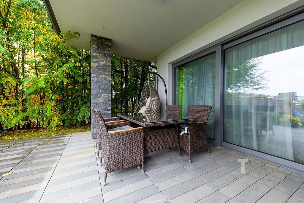 Celková podlahová plocha domu činí 216 m2 včetně prostorné terasy , která je částečně kryta střechou domu.