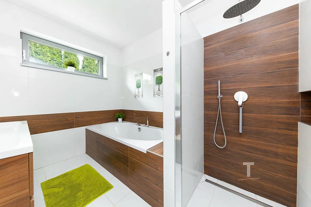 Tento prostorný a praktický dům je postaven z keramických bloků, osazen hliníkovými okny s trojskly a střechou z kvalitní pálené tašky s měděnou klempířinou.