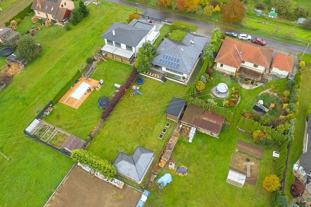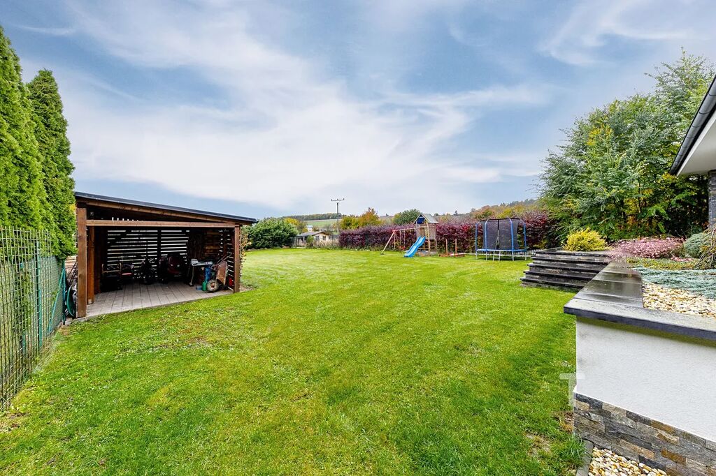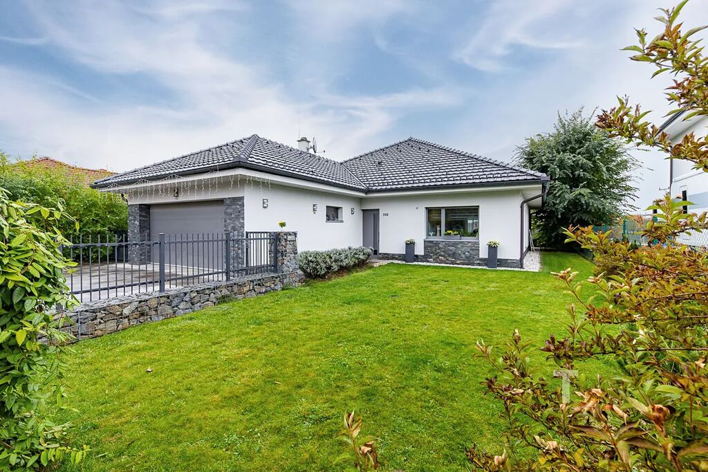 Nabízíme k prodeji samostatně stojící přízemní novostavbu vily o dispozici 5+kk s dvojgaráží v obci Drnovice u Lysic.