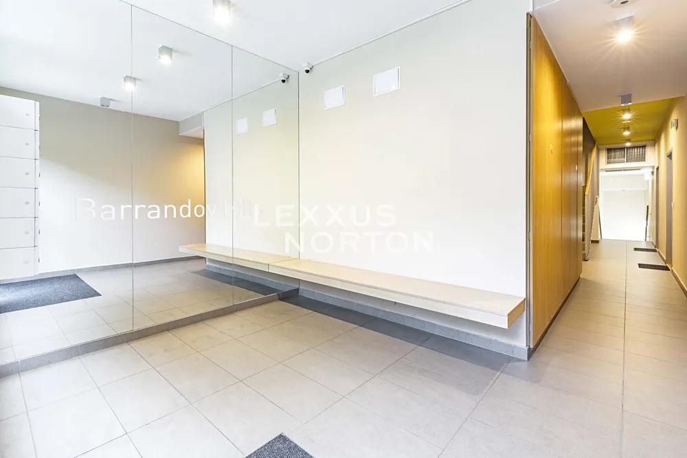 Byt se nachází v rezidenčním projektu Barrandov Hills na Praze 5 – Barrandov. Lokalita nabízí veškerou občanskou vybavenost – školy, školky, zdravotní středisko, restaurace, obchodní centrum, divadlo, koupaliště i další služby. Barrandov také nabízí množství zeleně a možností pro sportovní vyžití a relaxaci – Prokopské údolí, Chuchelský háj anebo cyklostezky v okolí. Velmi dobrá je i dopravní dostupnost – tramvajová zastávka jen pár minut chůze od domu s přímým spojením do centra Prahy, kam se dostanete do 15 minut. Pro řidiče je zde velmi snadné napojení na Jižní spojku a další výpadové silnice.