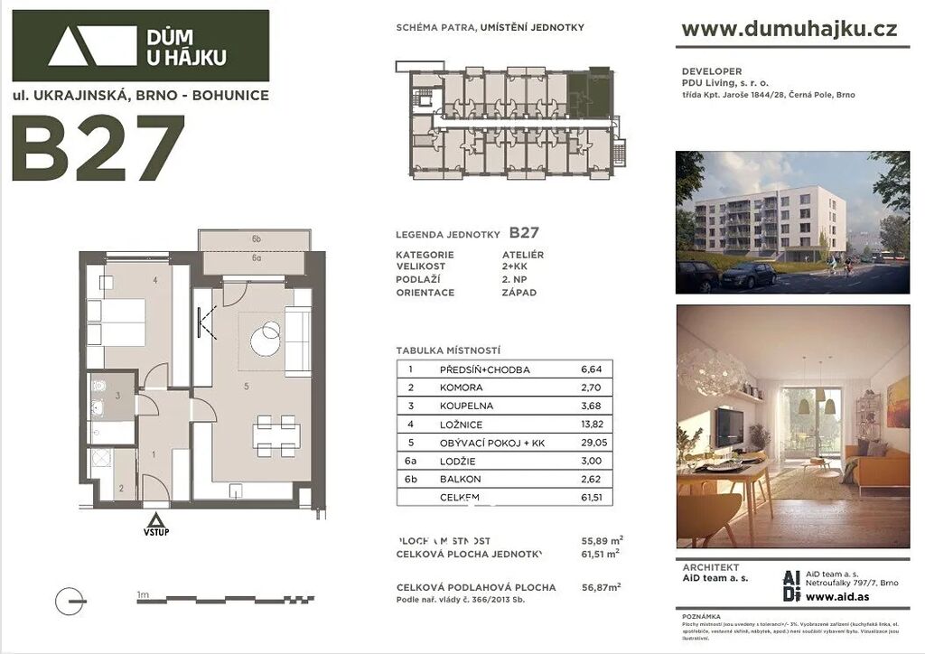 Jednotka: B27 • Podlaží: 2. NP • Orientace: západ