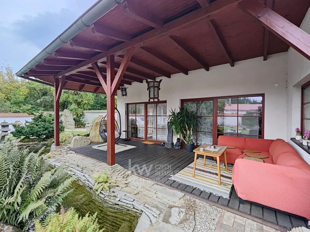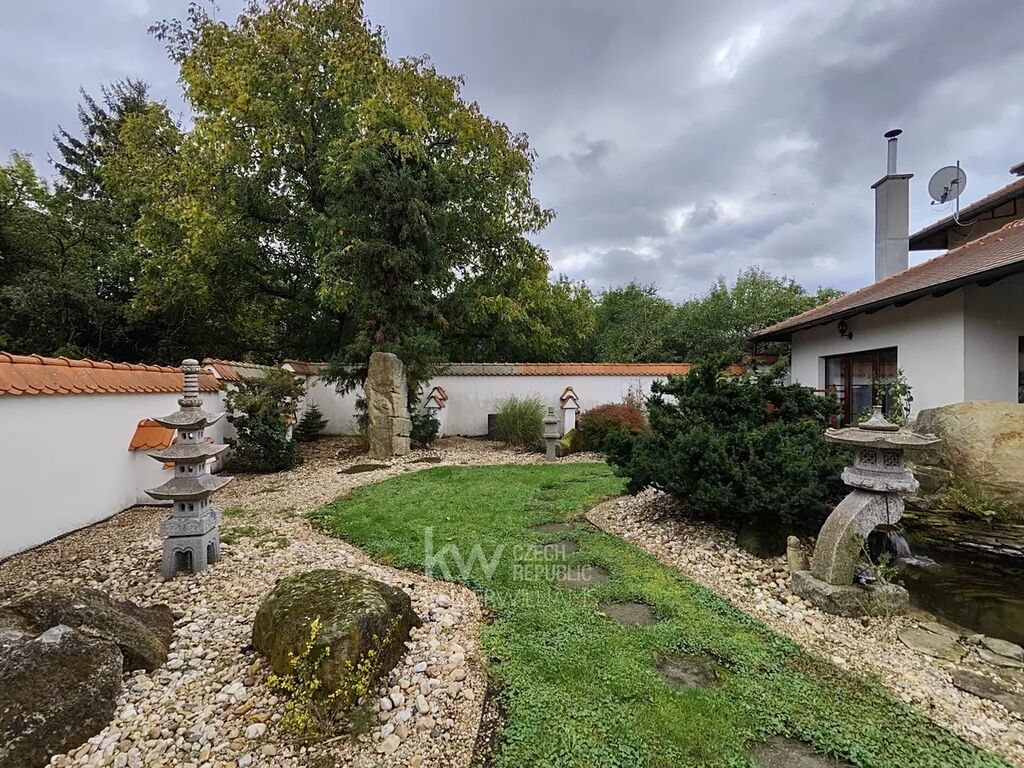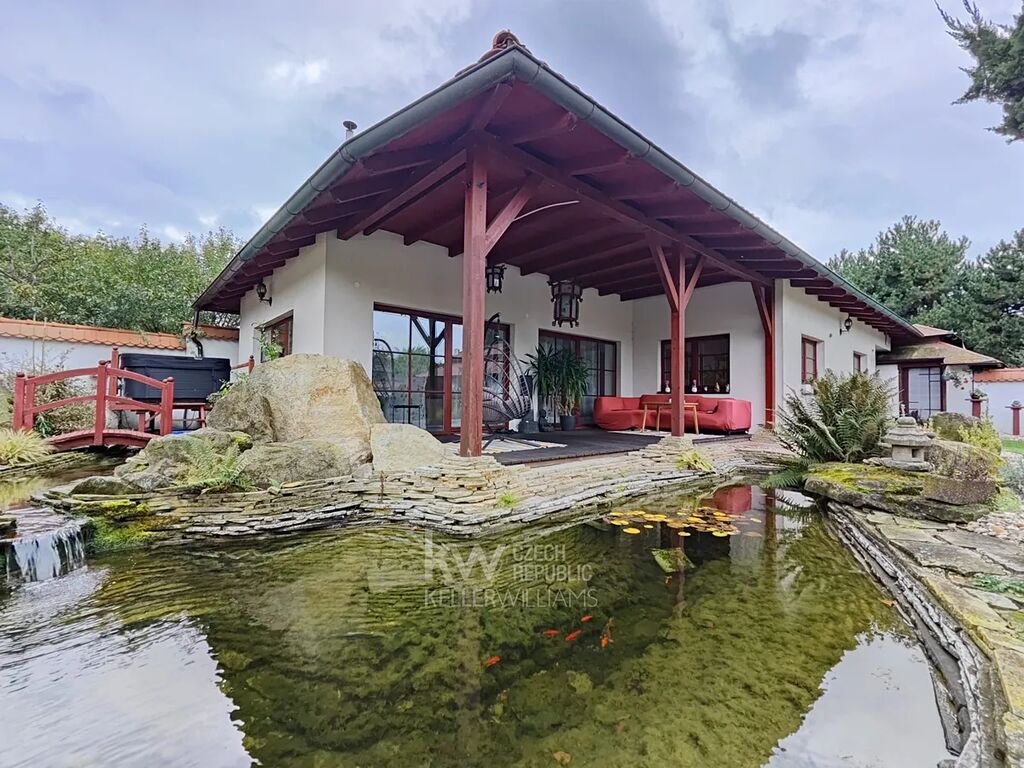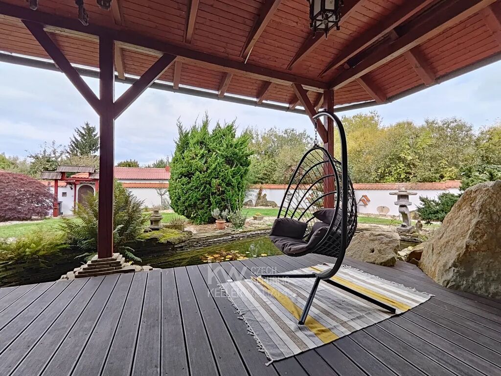 Samotný dům má dispozici 3+kk a je kompletně vybavený – přesně tak, jak je zachyceno na fotografiích. Velký a světlý obývací prostor je propojen s kuchyní a jídelnou, což vytváří příjemnou a vzdušnou atmosféru. Francouzskými dveřmi se z obývací části dostanete přímo na terasu s výhledem do pečlivě udržované zahrady. Zde na vás čeká stylové jezírko, které umocňuje japonský charakter domu, a vířivka, ideální pro večerní relaxaci.