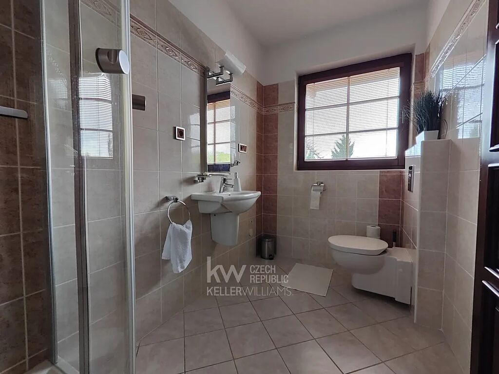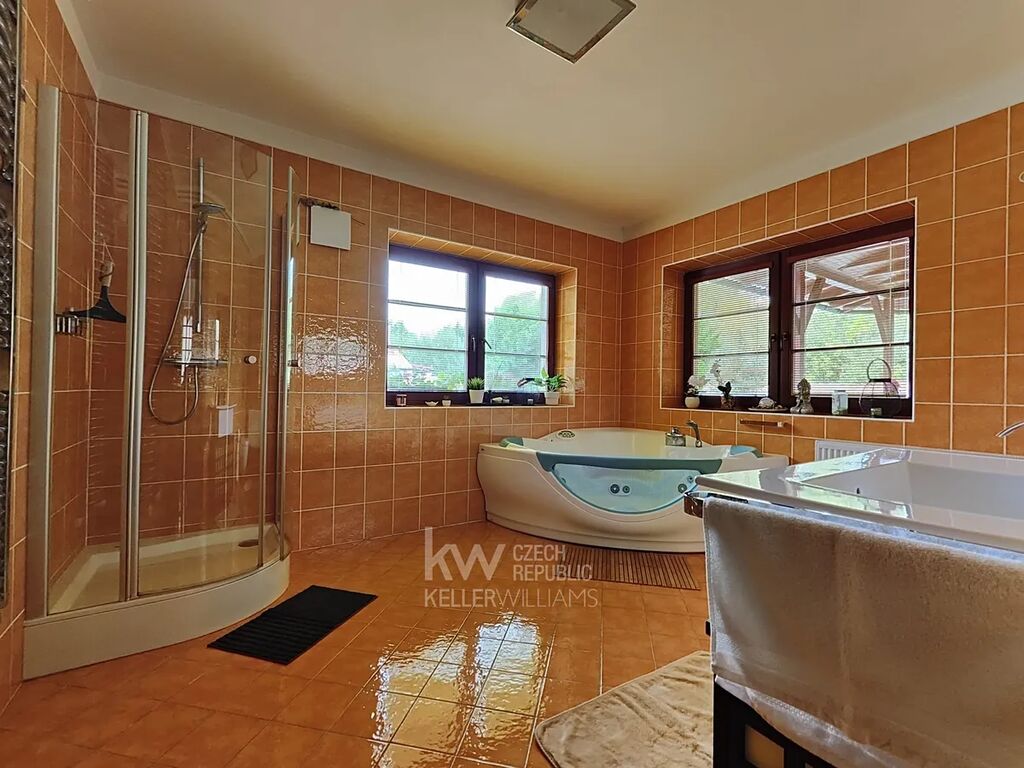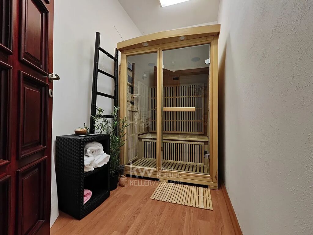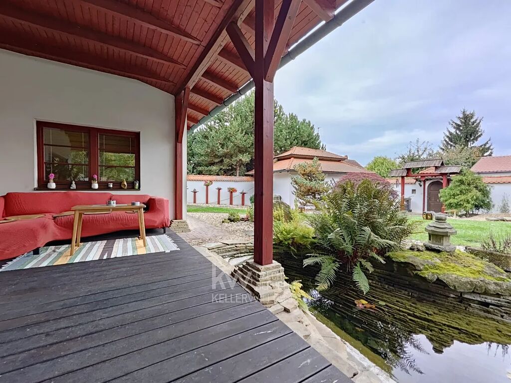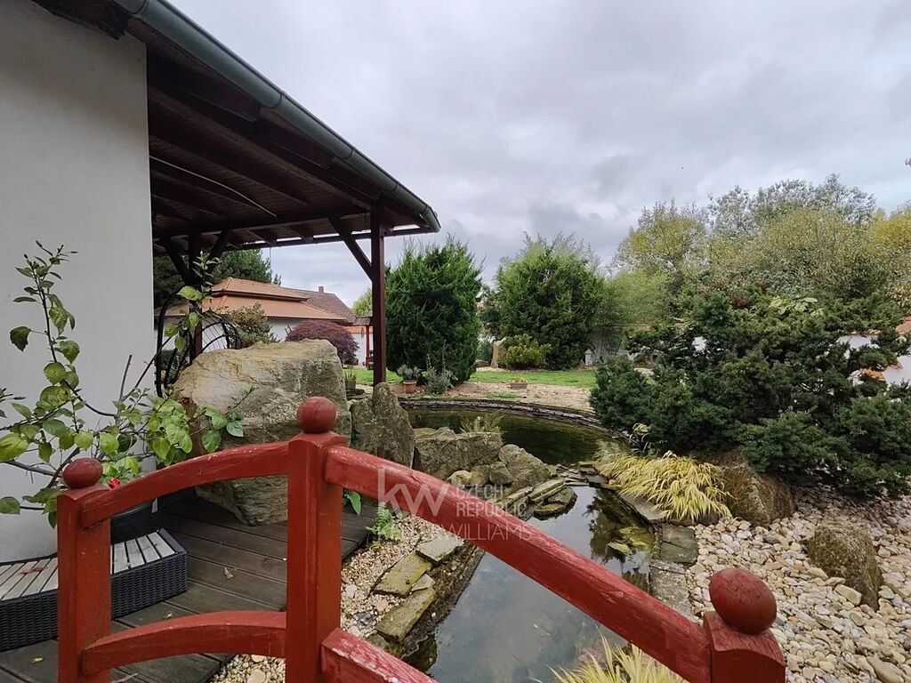 Samotný dům má dispozici 3+kk a je kompletně vybavený – přesně tak, jak je zachyceno na fotografiích. Velký a světlý obývací prostor je propojen s kuchyní a jídelnou, což vytváří příjemnou a vzdušnou atmosféru. Francouzskými dveřmi se z obývací části dostanete přímo na terasu s výhledem do pečlivě udržované zahrady. Zde na vás čeká stylové jezírko, které umocňuje japonský charakter domu, a vířivka, ideální pro večerní relaxaci.