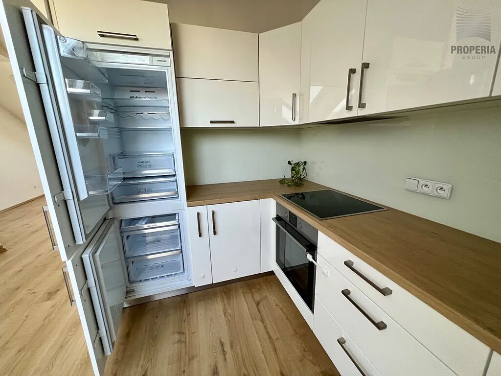 Nabízíme k pronájmu částečně zařízený zděný byt o dispozici 3+kk s malou terasou, ul. Přední, Brno-Černovice. 4. p/4 zrevitalizovaného domu bez výtahu. CP bytu činí 79 m2 (z toho cca 2 m2 terasa). Dispoziční řešení bytu nabízí neprůchozí pokoje. V předsíni je k dispozici velká vestavná skříň. Koupelna s vanou a sprchovací zástěnou, WC je samostatné. Kuchyňská linka s indukční varnou deskou a vestavnou horkovzdušnou troubou, chladničkou s mrazákem a myčkou nádobí - viz. fotodokumentace. Z dalšího vybavení zůstane k dispozici i automatická pračka, jídelní stůl se židlemi a skříně v obývacím pokoji. Nová střešní okna s elektricky ovládaným stíněním. Velkou výhodou je i vytápění a ohřev TUV vlastním plynovým kotlem.