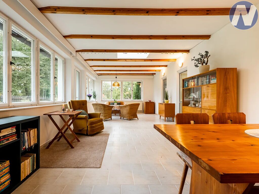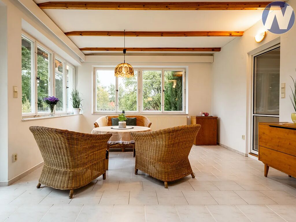Dům v přízemí nabízí obývací část se zimní zahradou a krbem, kuchyni, koupelnu s vanou a samostatné WC. V patře se nachází čtyři podkrovní pokoje, druhá koupelna se sprchou a WC – dostatek prostoru pro rodinu i přátele.