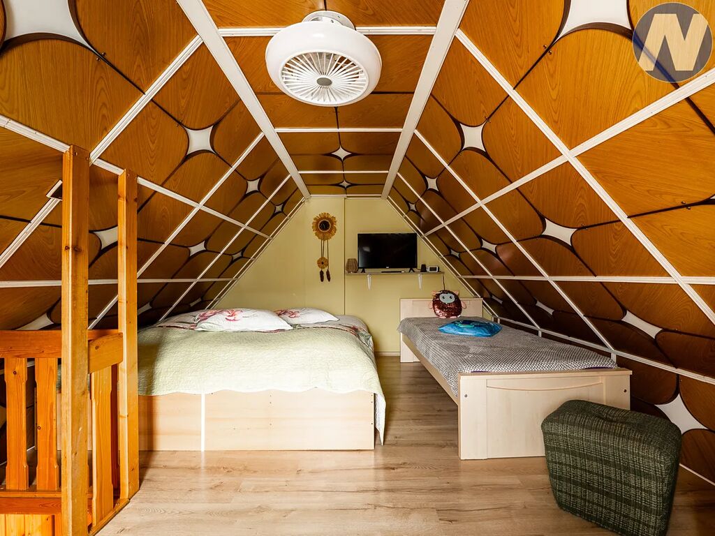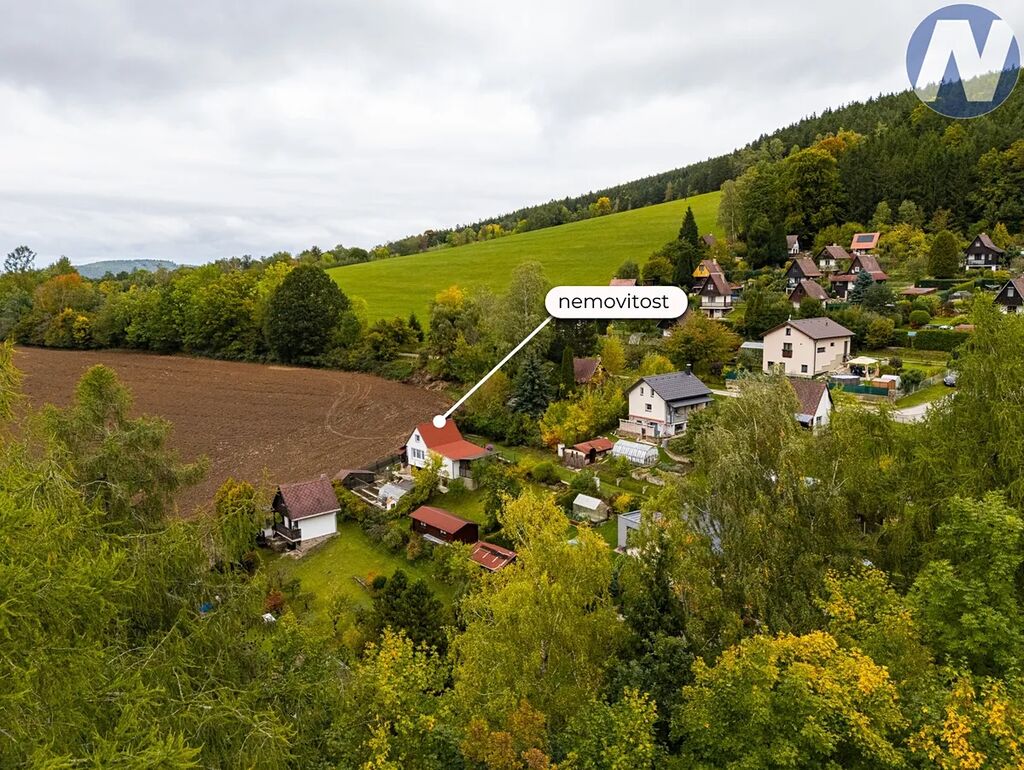 Na pozemku stojí udržovaná chata v perfektním technickém stavu – připojená na elektřinu i osadní vodu, odpad řešen septikem, parkování přímo u pozemku.