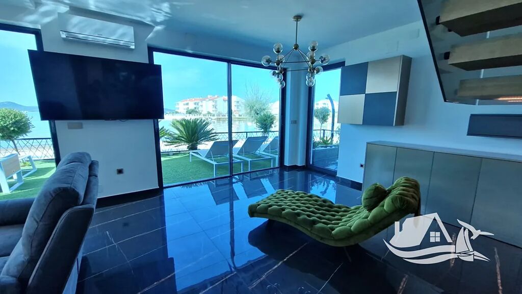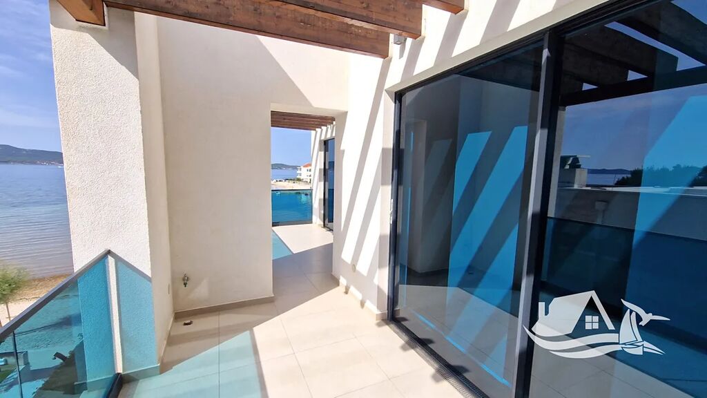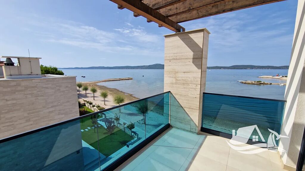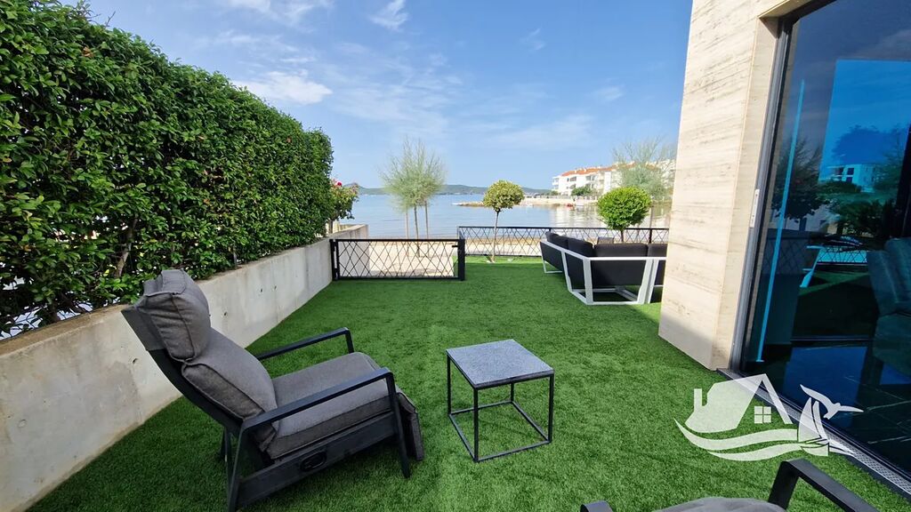 Představujeme vám mimořádně elegantní a plně zařízený třípodlažní apartmán v první linii u moře v krásném dalmatském městečku Sukošan. Tento moderní domov s čistou plochou 169,98 m² a soukromou zahradou o velikosti 110 m² kombinuje špičkovou kvalitu provedení, dokonalý komfort a výhledy, které se nikdy neomrzí. Moře je vzdálené pouhých 15 metrů a centrum Sukošanu jen 900 metrů.