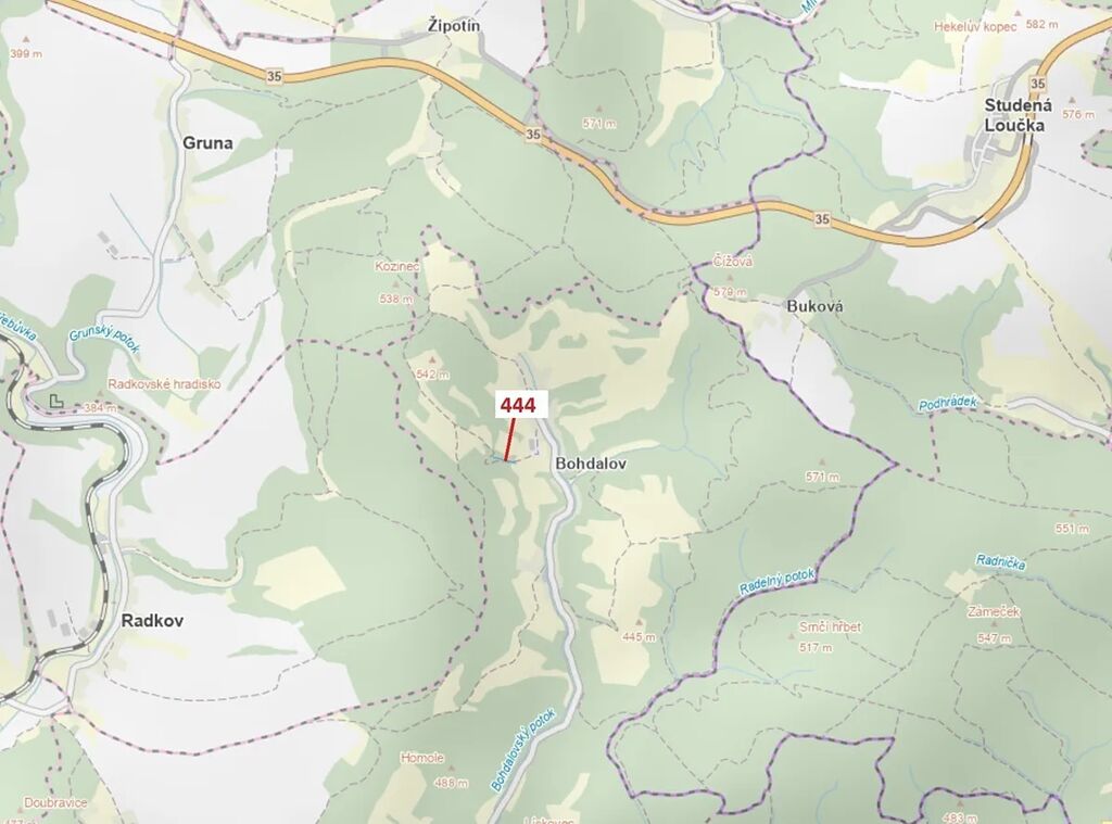 Lesní pozemek o výměře 302 m2, parcelní číslo 444, podíl 1/1, katastrální území Bohdalov u Městečka Trnávky, obec Městečko Trnávka, obec s rozšířenou působností Moravská Třebová, okres Svitavy, Pardubický kraj.