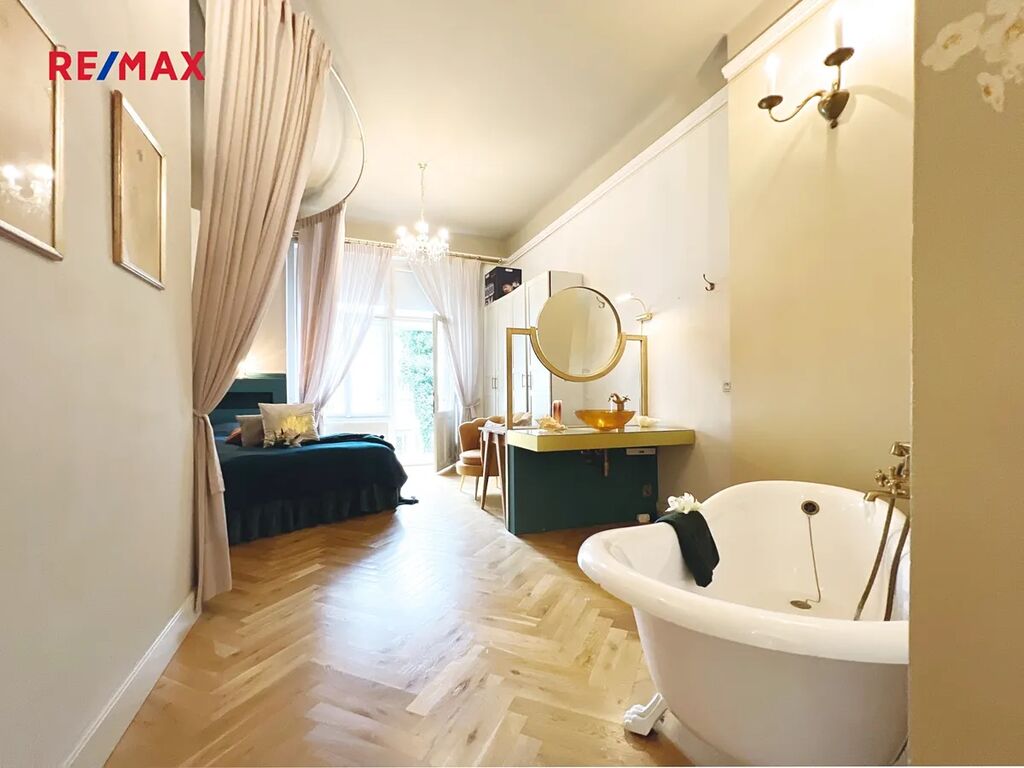 • Klimatizace, zabezpečovací systém, ambientní osvětlení, původní parkety, vysoké téměř čtyř metrové stropy