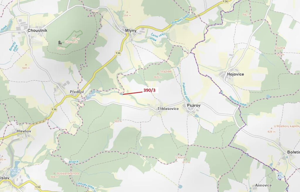 Lesní pozemek o výměře 1011 m2, parcelní číslo 390/3, podíl 1/1, katastrální území Tříklasovice, obec Psárov, obec s rozšířenou působností Tábor, okres Tábor, Jihočeský kraj. Po těžbě.