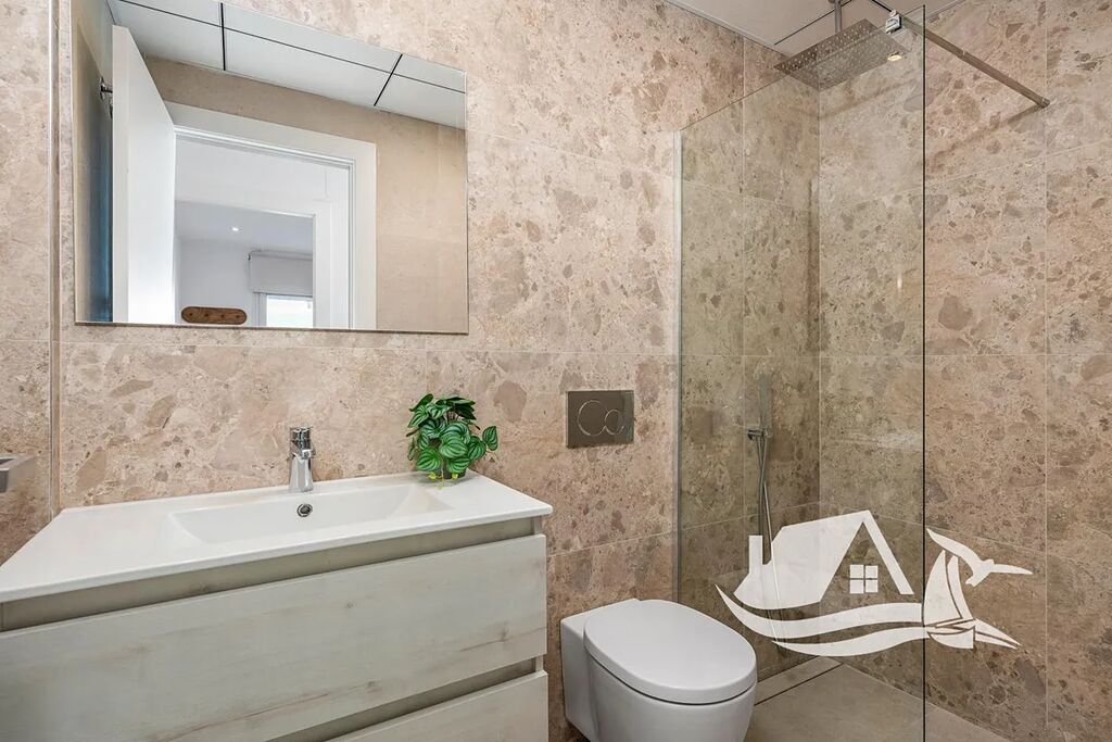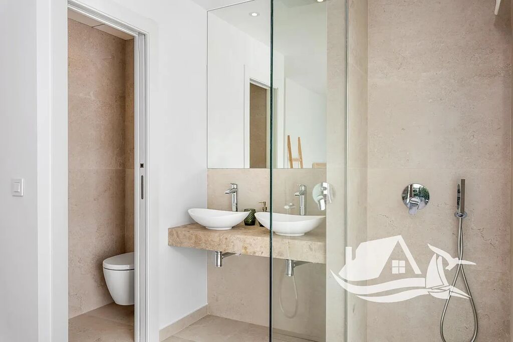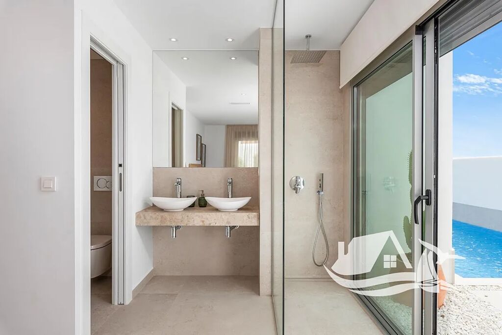 Vila s dispozicí 4+kk zaujme světlým a otevřeným prostorem o celkové ploše 115 m². Obývací pokoj s kuchyňským koutem tvoří srdce domu, kde se život přirozeně přelévá mezi interiérem a venkovní terasou. Dvě moderní koupelny doplňují tři komfortní ložnice, které nabízejí dostatek soukromí pro rodinu i hosty. Velká francouzská okna vpouštějí do domu denní světlo a propojují obytný prostor s terasou o rozloze 22 m² a zahradou, kde se nachází soukromý bazén – ideální místo pro odpočinek, rodinné večeře nebo letní večery pod hvězdami.
