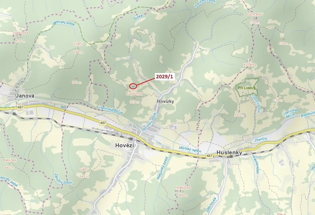 Lesní pozemek o výměře 680 m2, parcelní číslo 2029/1, podíl 1/1, katastrální území Hovězí, obec Hovězí, obec s rozšířenou působností Vsetín, okres Vsetín, Zlínský kraj.