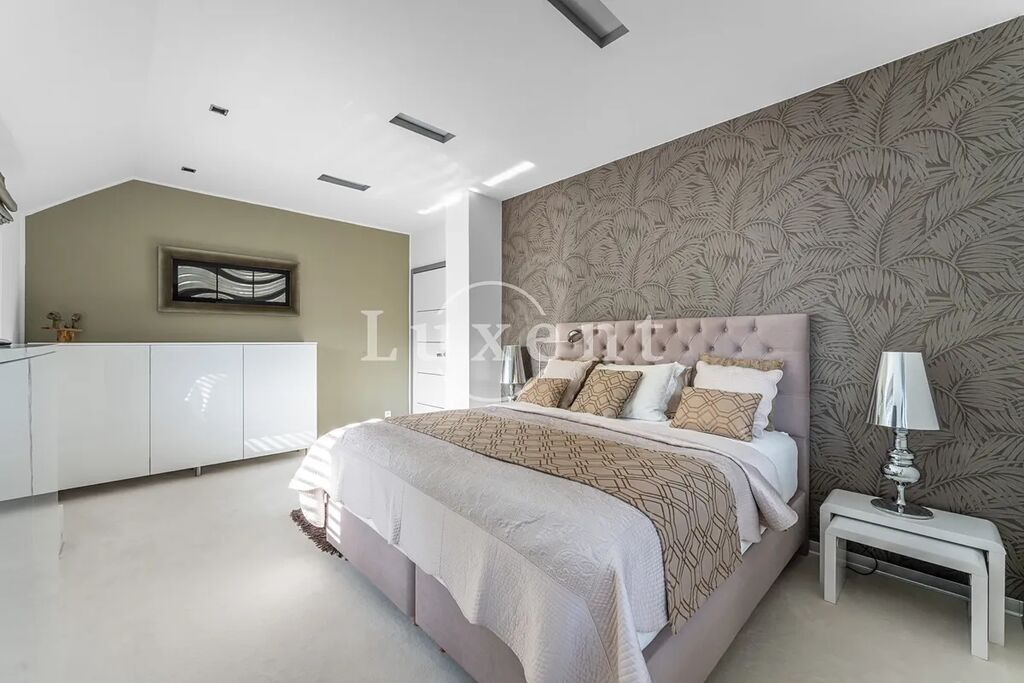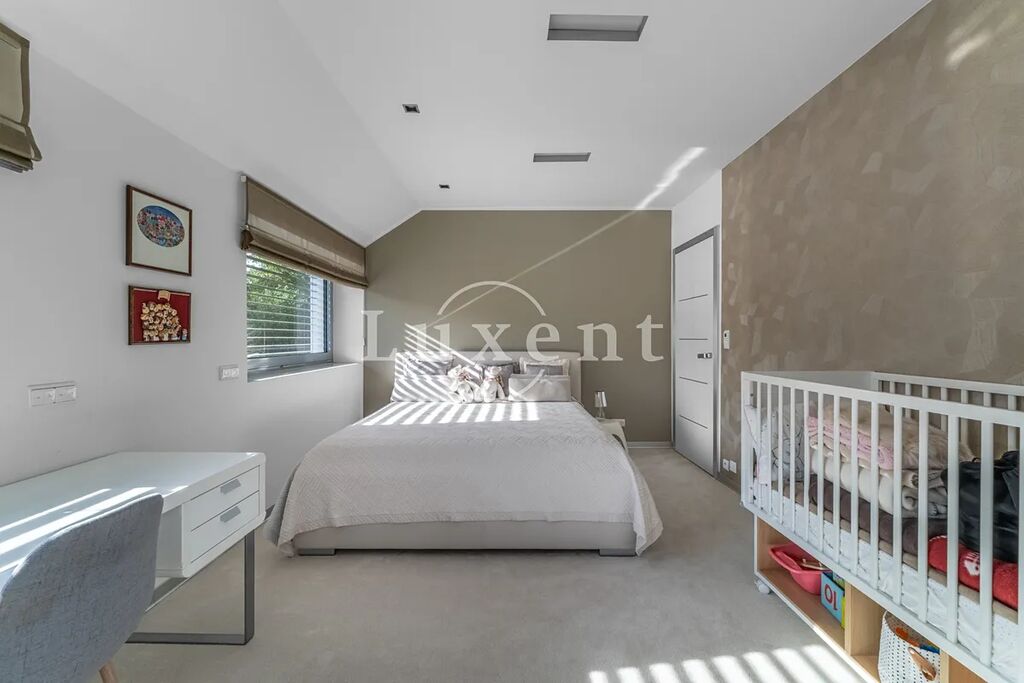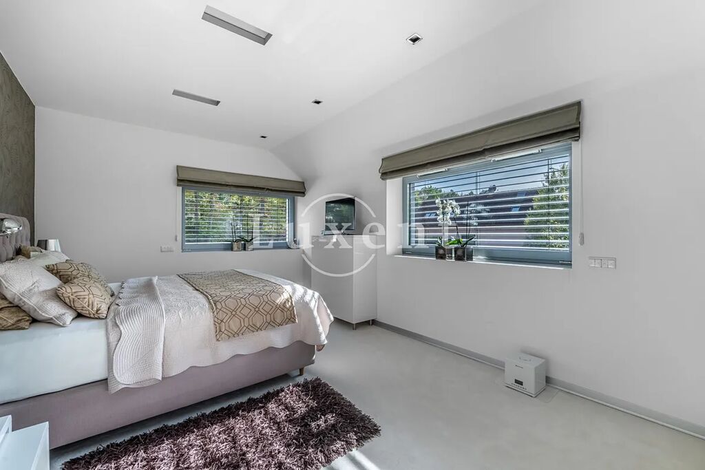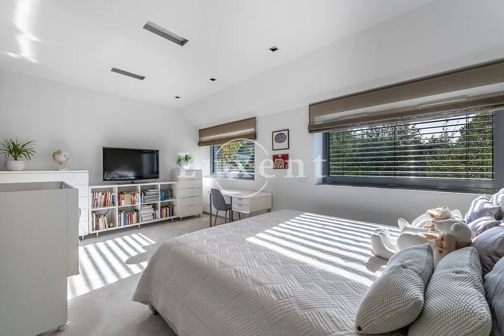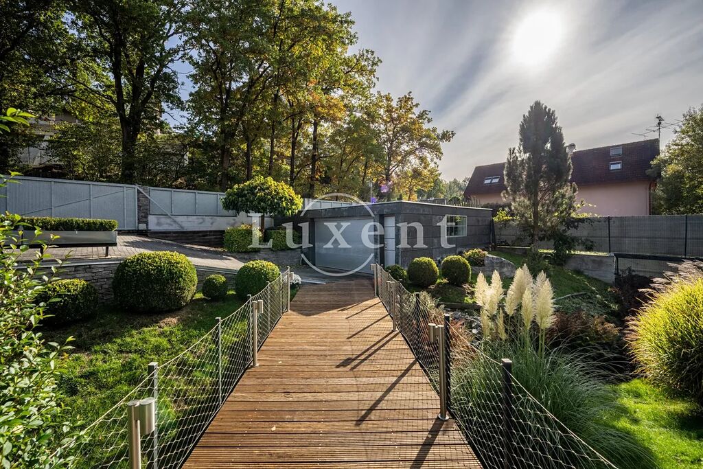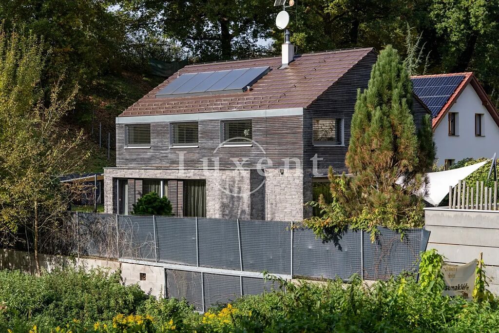Nabízíme k prodeji dvojpodlažní rodinný dům 5+kk s celkovou užitnou plochou 185 m², který byl postaven v roce 2011. Dům představuje architektonicky nápaditě řešené moderní bydlení, které je citlivě zasazené do malebné okolní přírody Hrusic. Jihovýchodně orientovaná vila důmyslně pracuje se všemi živly: vodu představuje venkovní bazén a potůček na pozemku, rozlehlá zahrada poskytuje zemi, vzduch proudí velkými okny a dveřmi, oheň je zkrocen v krbu.