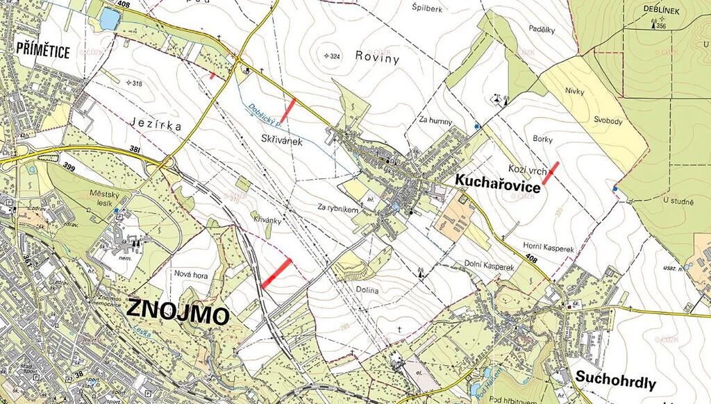 Pozemky v k.ú. Kuchařovice: 620/153, 626/129, 779/206, 780/71 a 781/83