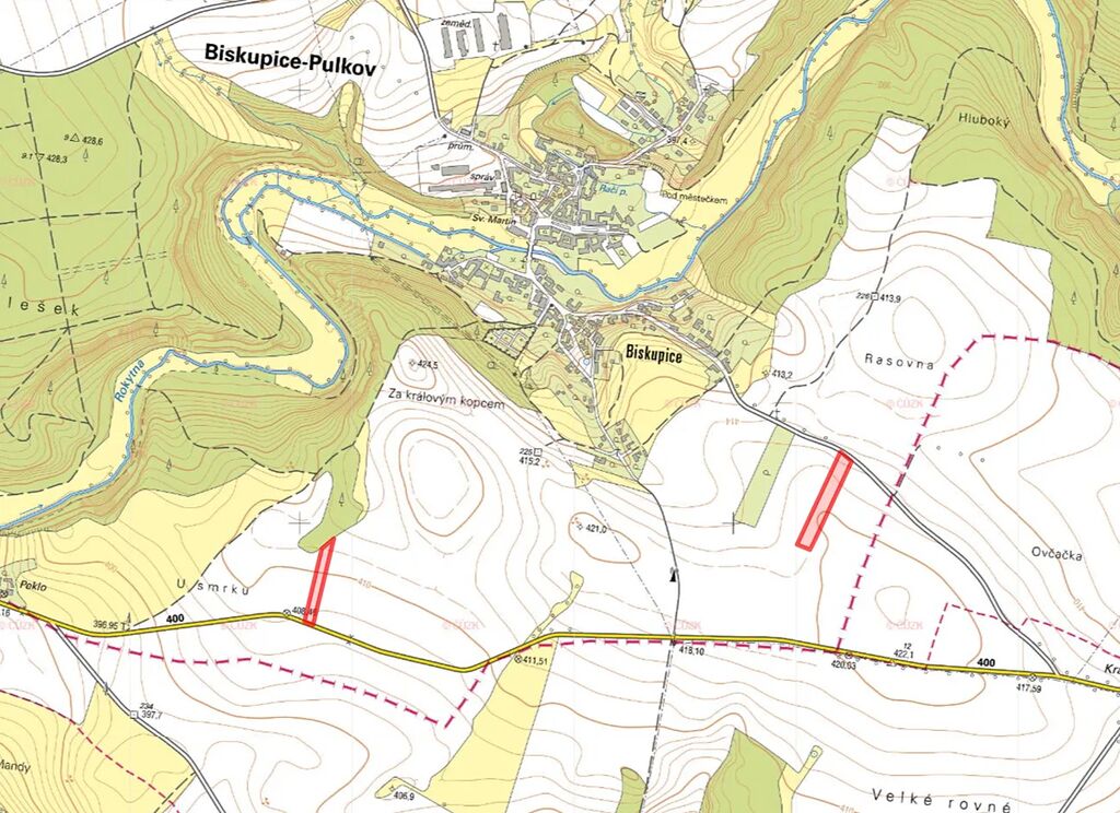 Ve výlučném vlastnictví nabízíme k prodeji dva zemědělské pozemky v katastrálním území Biskupice u Hrotovic, obec Biskupice-Pulkov, okres Třebíč. Pozemky jsou zapsány na listu vlastnictví č. 504.