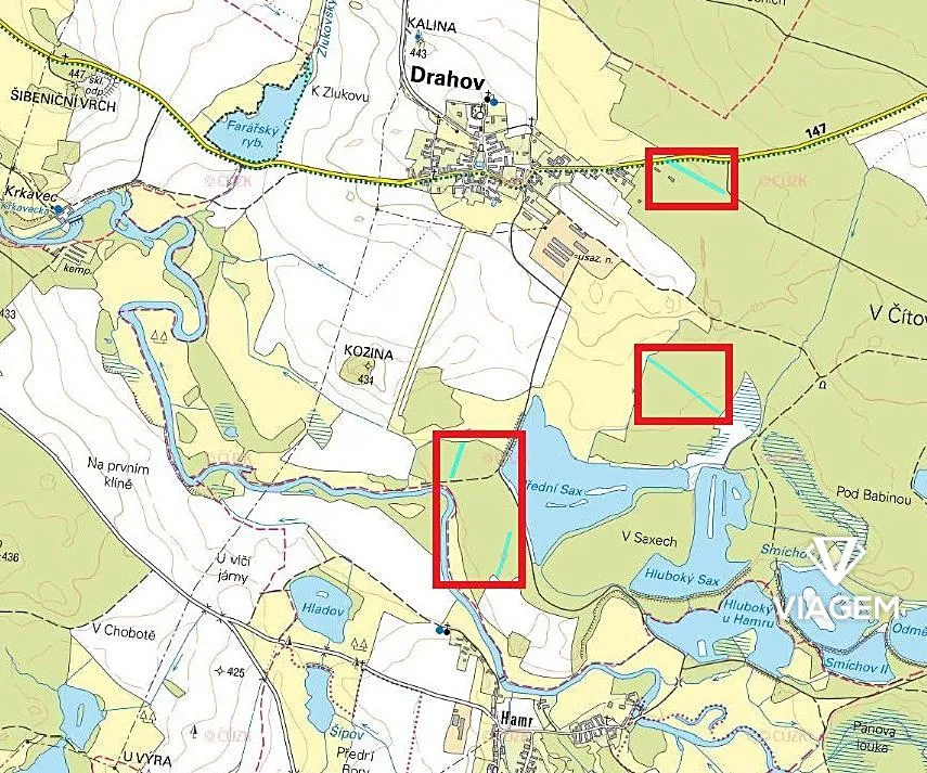 Nabízíme Vám ke koupi pozemky v katastrálním území Drahov, v okrese Tábor, LV 248, podíl 1/8 o výměře 1478 m2.