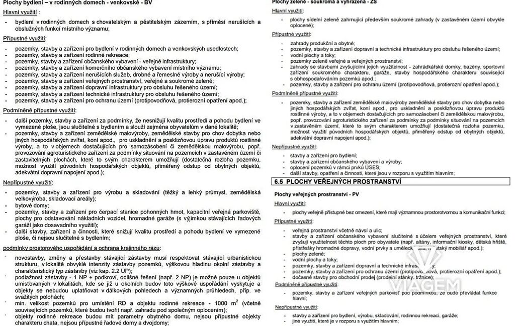 Možnosti využití pozemků jsou dány územní plánem, který předurčuje pozemky pro rekreační zástavbu se specifikací “ZS - plochy zeleně - soukromá a vyhrazená”.
