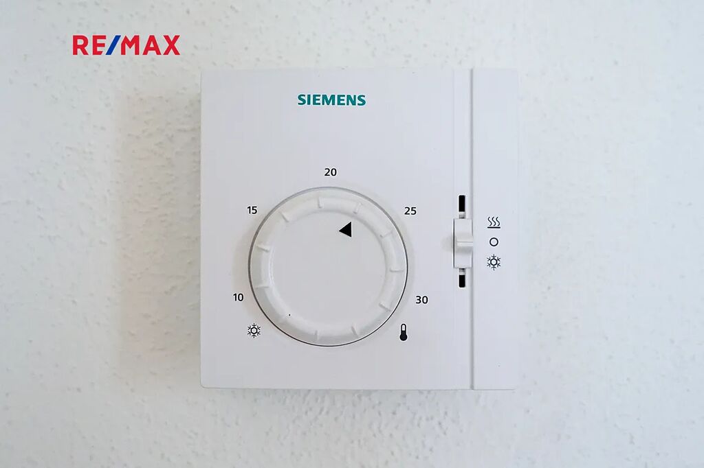 Byt je vytápěn moderním podlahovým topením, přičemž celý dům využívá úsporné tepelné čerpadlo.