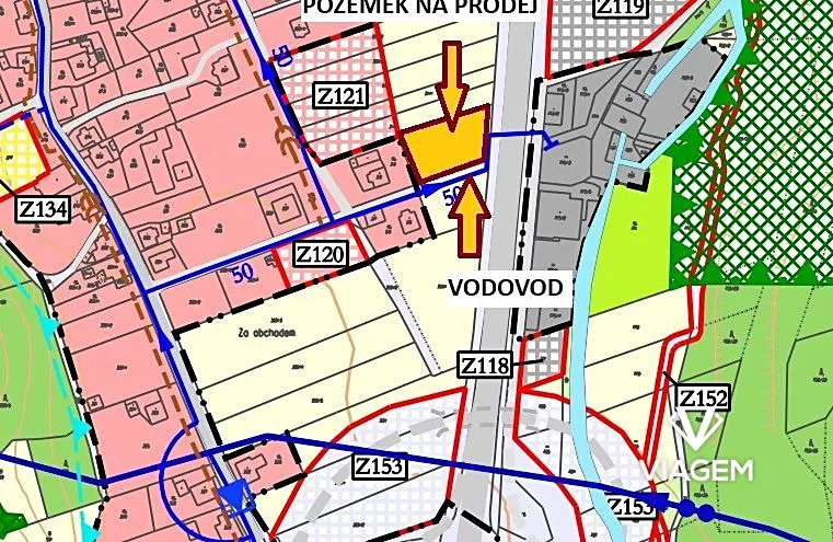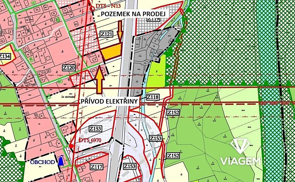 Jedná se o pozemek městské zeleně v přímé návaznosti na zastavěnou oblast. Po změně územního plánu lze užívat jako zahradu. Nyní je pozemek přístupný ze soukromé komunikace. Veškeré sítě jsou v dosahu. Vodovod vede na hraně pozemku a elektřina je na hraně účelové komunikace vedoucí k pozemku viz obrázky.