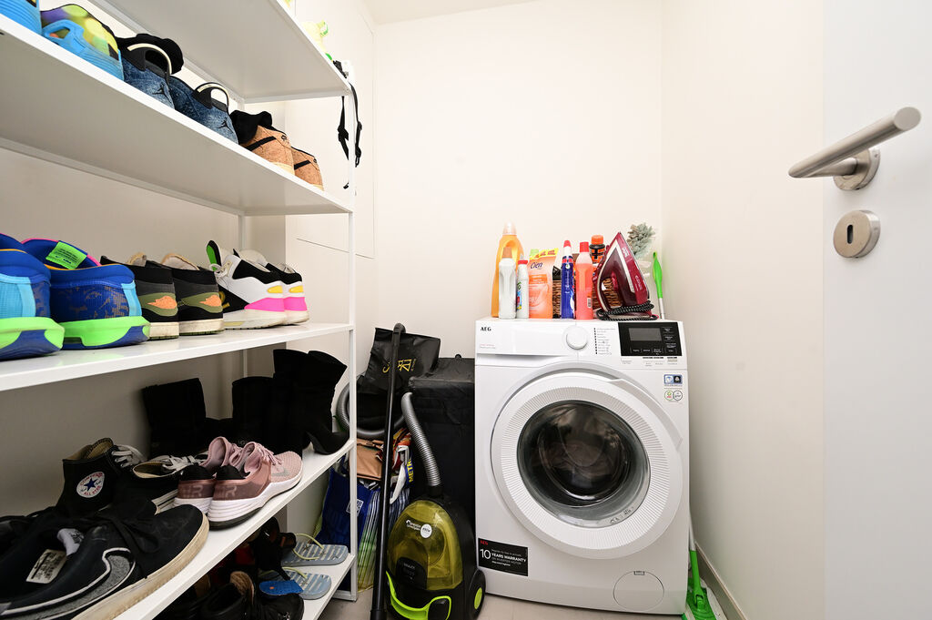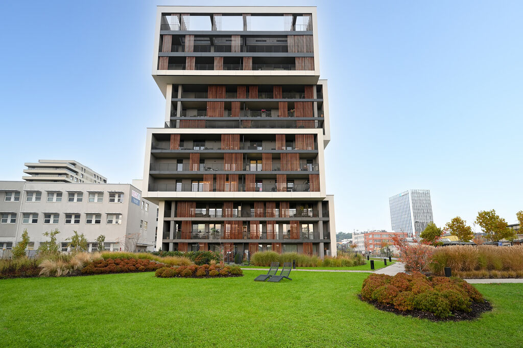 Dům spadá do energetické třídy B, tedy velmi úsporné, což zajišťuje nízké měsíční náklady na provoz. Poblíž garážových stání a sklepních kójí je navíc k dispozici praktický mycí box na kola, kočárky nebo venkovní dětské hračky, který mohou využívat všichni obyvatelé domu.