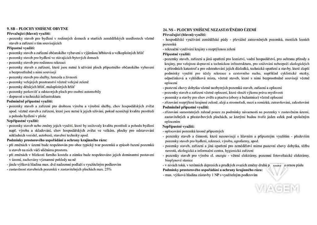 Možnosti využití pozemků jsou dány územní plánem, který předurčuje pozemky pro rekreační zástavbu se specifikací “SB - plochy smíšené obytné” a “NS - plochy smíšené nezastavěného území”.