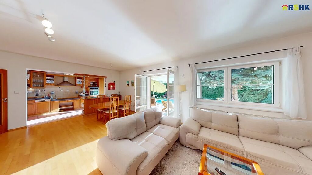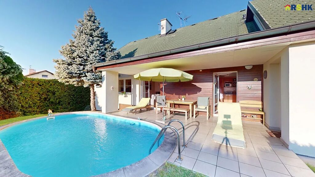 Celková užitná plocha domu je 195 m² + potenciál půdy, pozemek 569 m², krásně upravený, oplocený, se vzrostlými stromy a keři, které dávají zahradě i bazénu soukromí a atmosféru klidu.