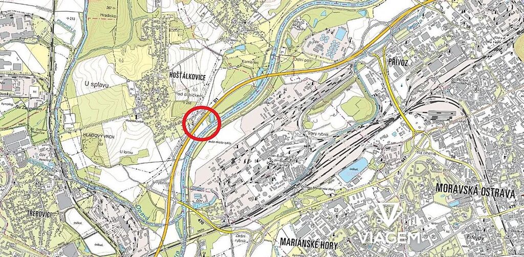 Pozemek je přístupný pozemní komunikací, která je ve vlastnictví Statutárního města Ostrava a nachází se kolem pozemku. Příjemným zpestřením je výhled na blízko nacházející se řeku Odru.