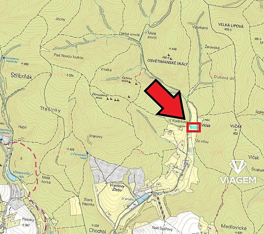 Pozemky se nacházejí nedaleko rekreačního střediska Kemp Vlčák. Přístup je zajištěn cestou, která vede kolem parcel. Investiční příležitost v možnosti budoucího stavebních nebo rekreačních ploch