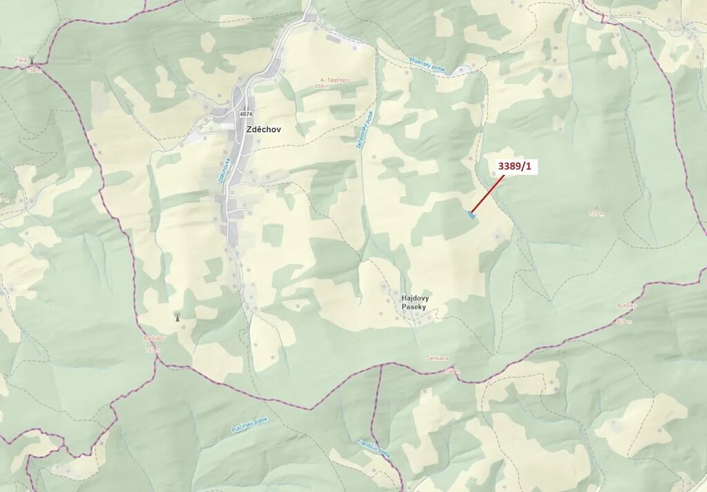 Lesní pozemek o výměře 1617 m2, parcelní číslo 3389/1, podíl 1/1, katastrální území Zděchov, obec Zděchov, obec s rozšířenou působností Vsetín, okres Vsetín, Zlínský kraj.